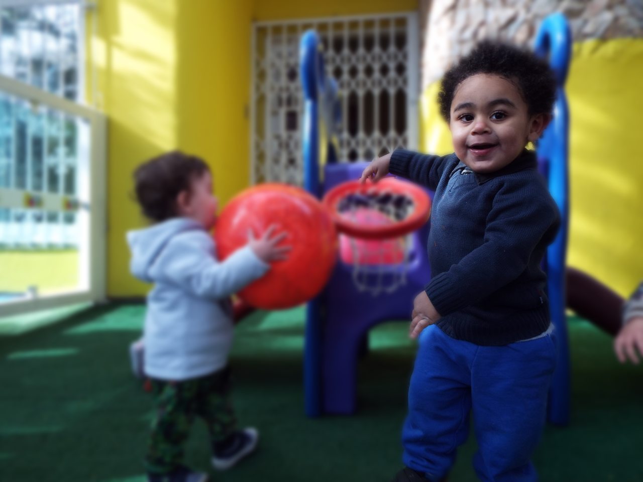qualidade. A sala é ampla, bem arejada, oferecemos ainda brinquedos e mobiliários bem coloridos que estimulem a percepção visual e exploratória. Dentro da sala contamos ainda com um banheiro com torneira quente e frio, uma área de troca de fraldas e compartimentos de caixas plásticas para armazenar os itens pessoais de cada criança. Ainda oferecemos espaços de pátio, com brinquedos adequados a faixa etária, além de atividades dirigidas e planejadas pelas professoras. Os bebês além de atendidos, quanto as suas necessidades básicas, são constantemente incentivados com muita música, brincadeiras, jogos, instrumentos sonoros e coloridos. A alimentação possibilita aos pequenos muitos desafios, seja no ato de dar a mamadeira, que no qual envolve a conversa, o tato, o olhar, até a alimentação mais sólida, desde a exploração de cada alimento, cores, sabores e texturas, até a busca da autonomia em manusear o talher sozinho. Ao longo do ano realizamos observações sobre os temas mais importantes, assim a equipe pedagógica faz a escolha do tema principal e aplica no próximo ano, com o intuito de colaborar para o enriquecimento do aprendizado, através disso mensalmente a equipe pedagógica envia para as professoras subprojetos, onde cada professora adequa o mesmo a sua faixa etária.